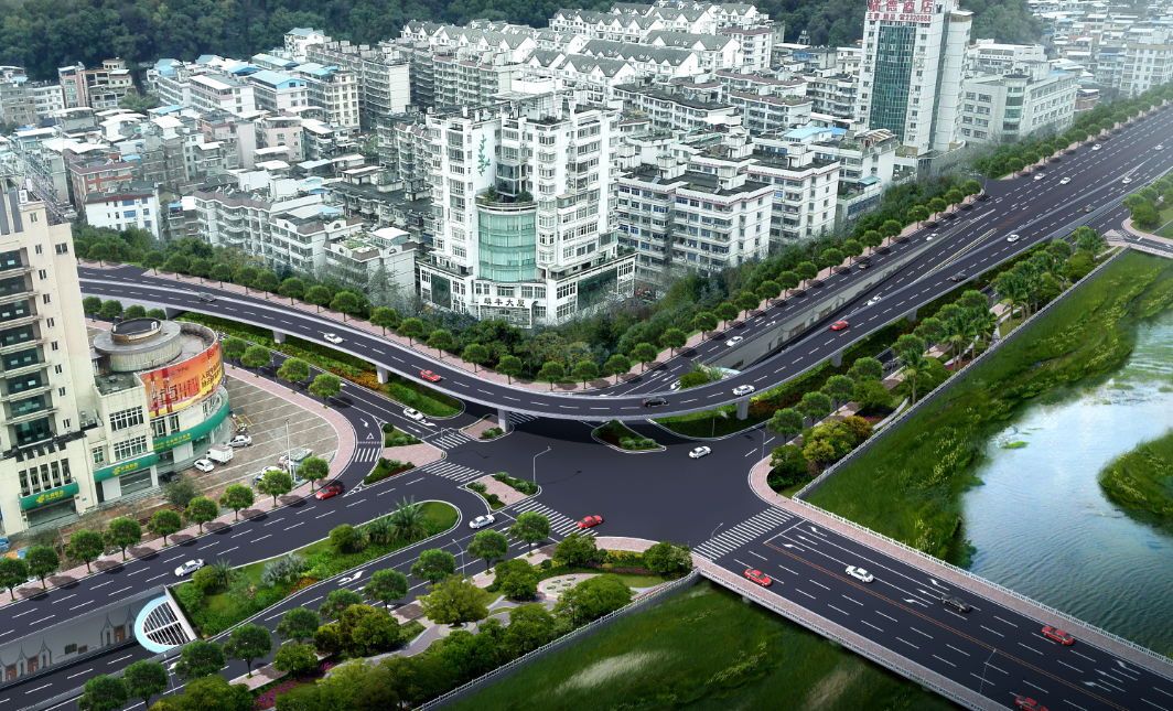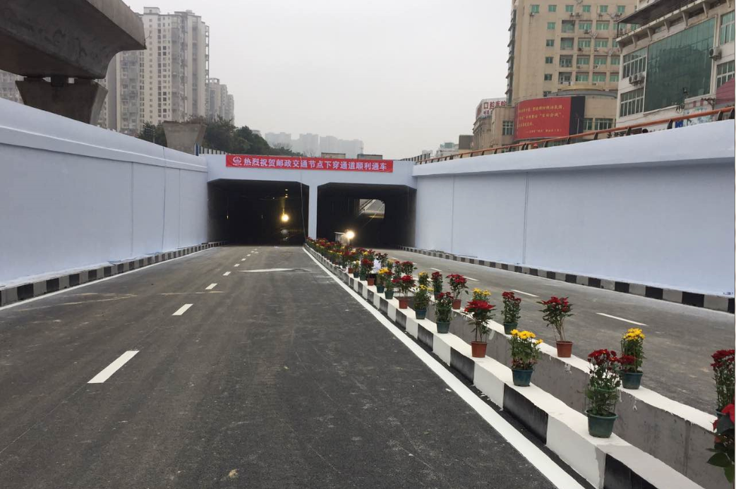 郵政交通節(jié)點項目起于蓮莊北路順康汽車檢測中心處,終于瑞德酒店門口,采取“主線下穿、左轉(zhuǎn)高架”方案,設下穿通道下穿南環(huán)西路與南環(huán)中路交叉口,全長700米,凈寬2×8.5米,其中暗埋段長度為120米,敞開段(U型槽)長275米;南環(huán)路往溪南南路方向設左轉(zhuǎn)匝道高架,橋長246米,兩側(cè)引道擋墻全長117米,項目總投資約1.4億元。
