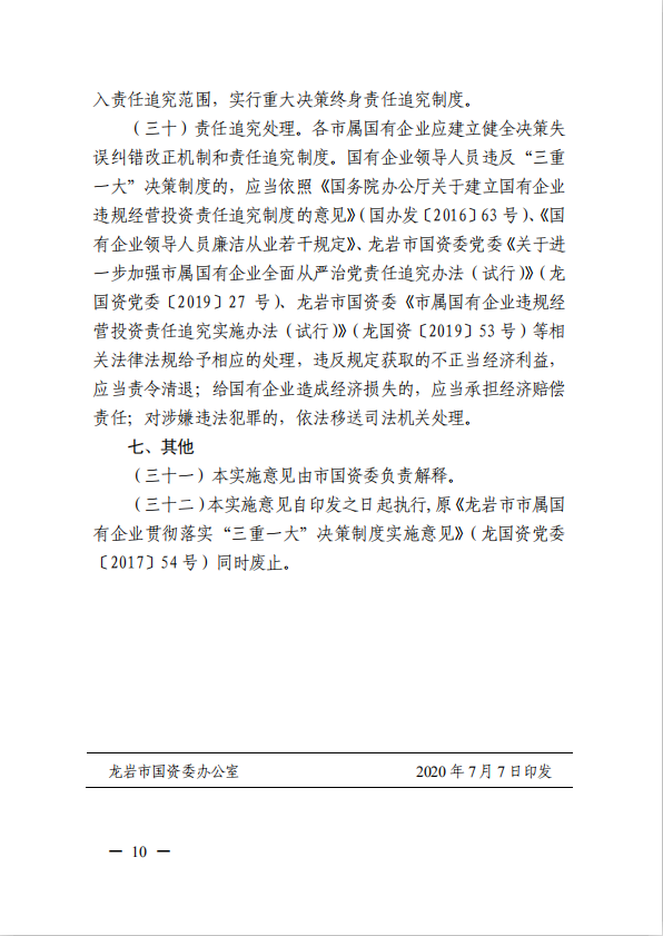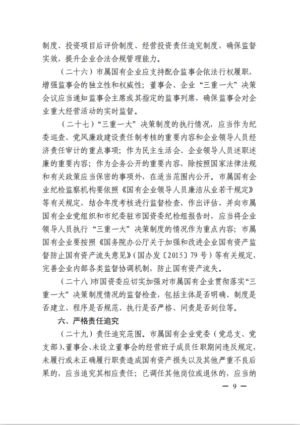 關(guān)于進一步規(guī)范市屬國有企業(yè)貫徹落實“三重一大”決策制度實施意見(國資黨委[2020]21號)